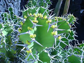 Als 1853 auf Lanzarote eine Mehltau-Plage den Weinbau zum Erliegen brachte, erwuchs aus dem Kaktus eine neue Hoffnung auf Prosperität und Wohlstand. Denn die Opuntien ließen sich nutzen zur Produktion eines kostbaren Farbstoffs (Karminrot / Koschenille). Sie nähren nämlich einen eigenen Parasiten, die Schildlaus, deren Larven die rote Farbe absorbieren. Heute existiert keine planmäßige Koschenille-Zucht mehr auf Lanzarote. Nur bei Guatiza und Mala können wir noch weite und dicht bepflanzte Opuntienfelder sehen. An anderen Orten wächst die Opuntie eher als dekoratives Einzelstück, mal mit, mal ohne Läuse.